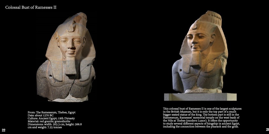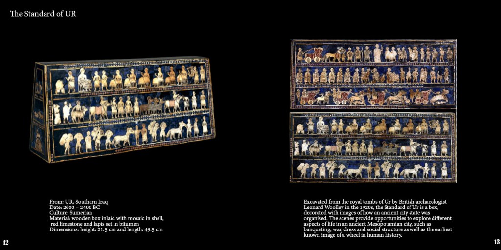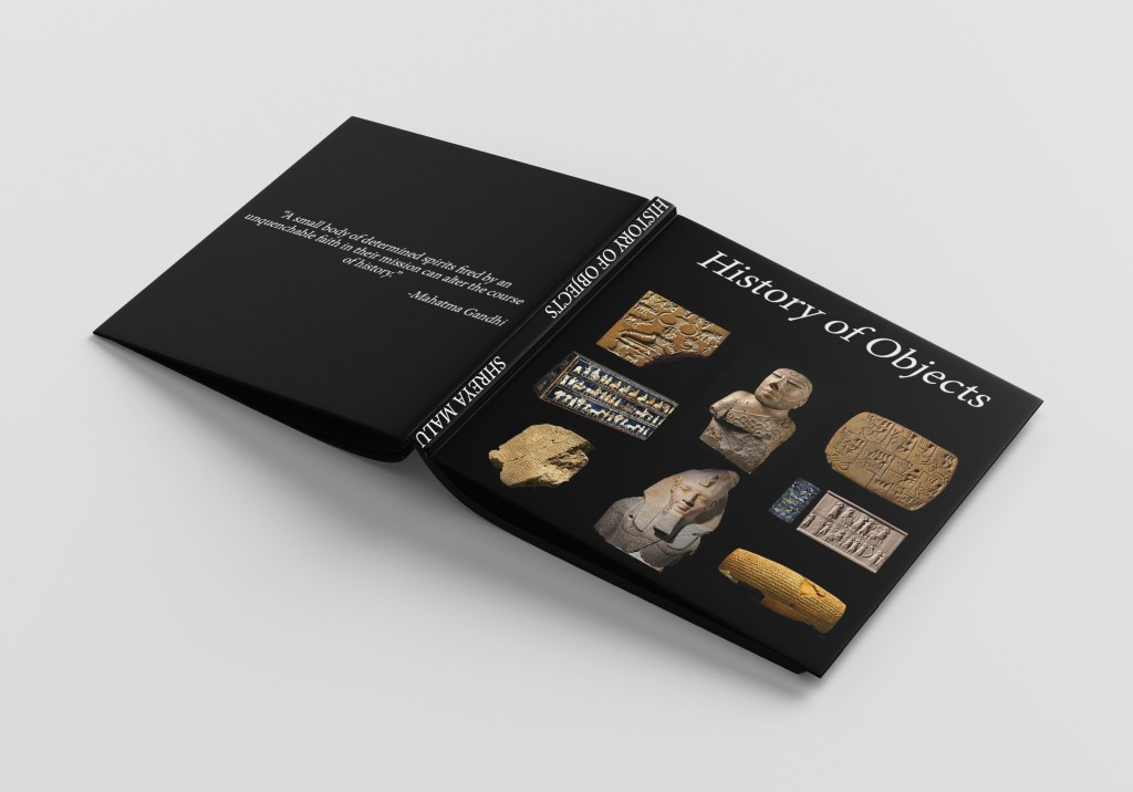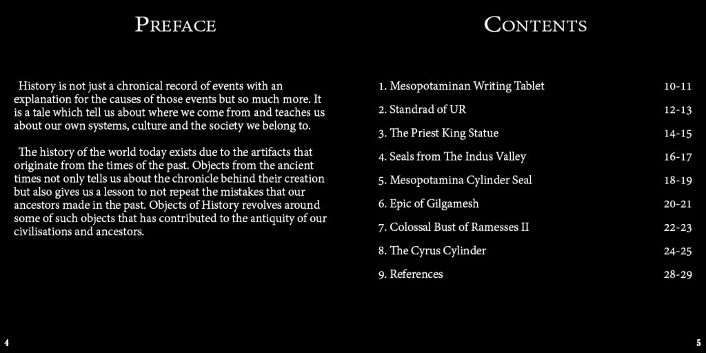 I have kept my book pretty simple and bold to the eye because that is what history is quite bold and impacting. I have only included the important information about the objects, keeping the format same for all of their basic information on the left pages while the story behind them and their use on the right hand pages. I have been very specific to the content i have chosen so that i can keep it short while informative being it for a coffee table book. Here, i have attached the final pages of my book.